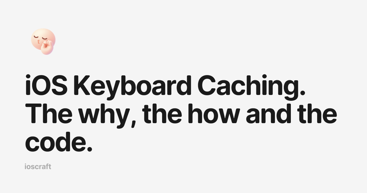 But there's still the cold start problem. The very first keyboard appearance has a noticeable delay, and you can't predict the keyboard height until it's shown up at least once. In Keyboard Cachingiioscraft, we add height caching and a preload trick that makes the first tap feel just as instant as every tap after it.